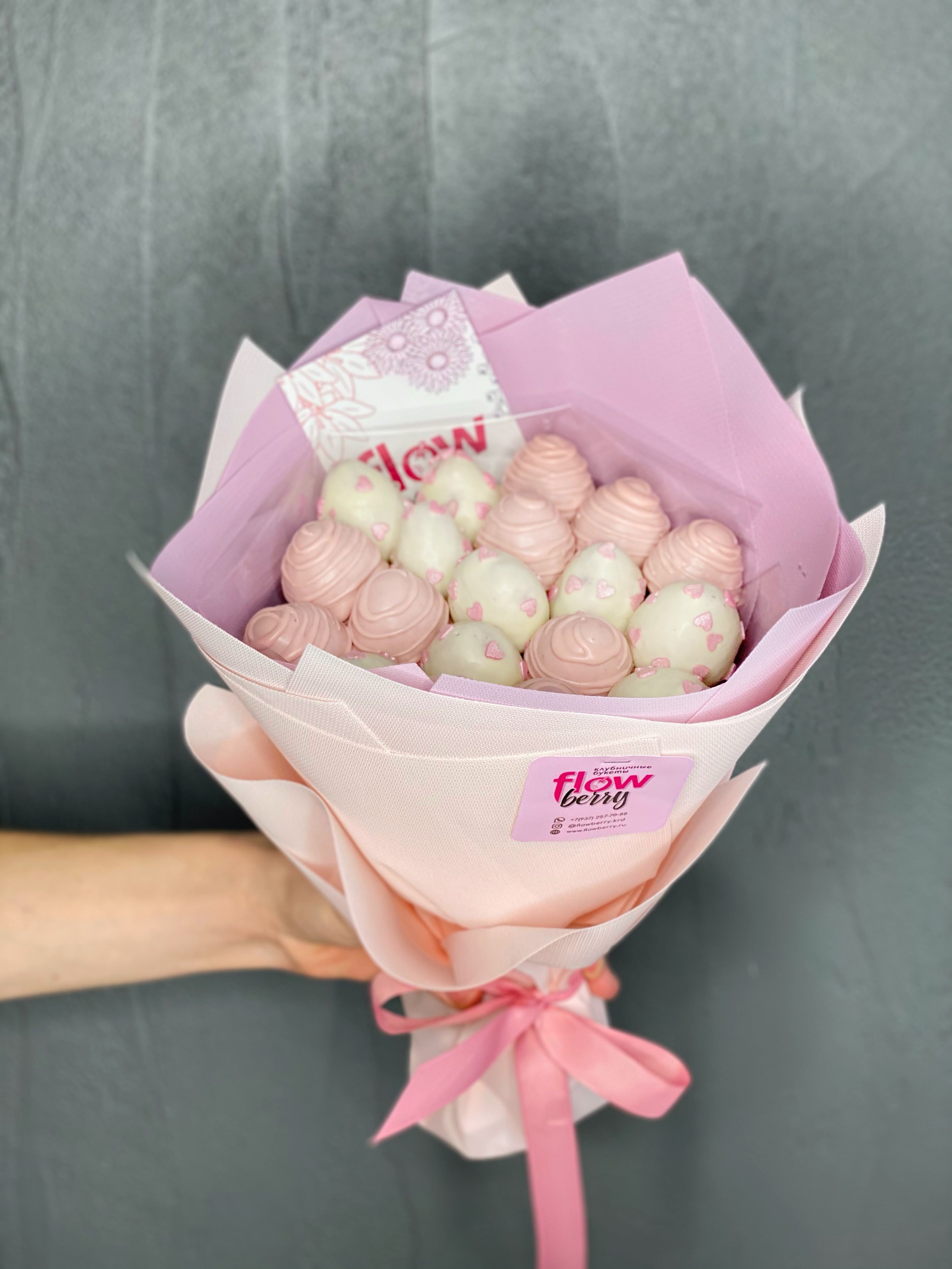 Оформляла заказ клубничного букета на сайте, мне профессионально помогли с выбором букета для сестренки!