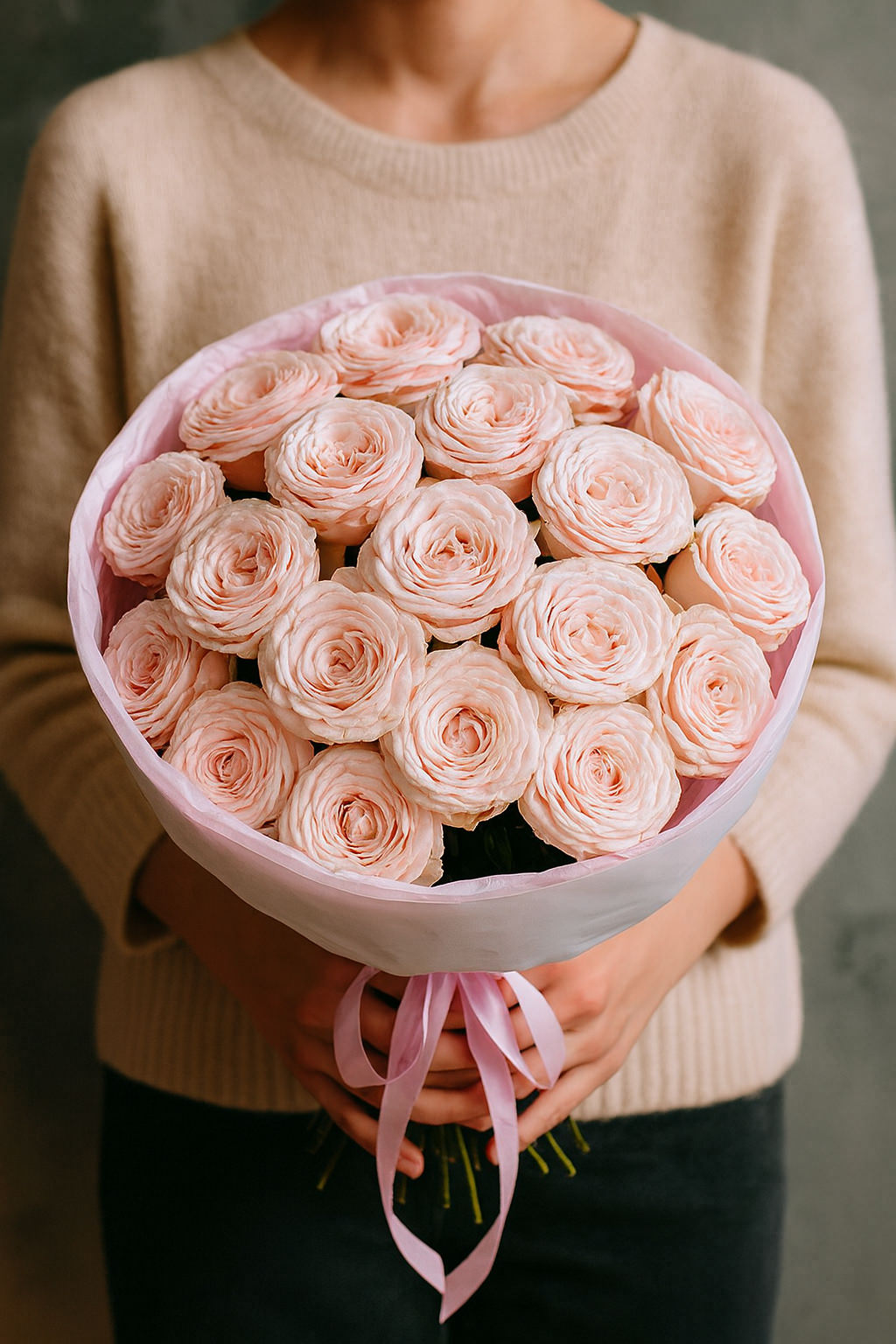 Воздушный и утончённый букет из нежно-розовых роз станет символом заботы, любви и искренности. Лёгкая пудровая гамма придаёт композиции изысканность и женственность. Такой подарок идеально подойдёт для признания в чувствах, свадьбы или как комплимент близкому человеку.