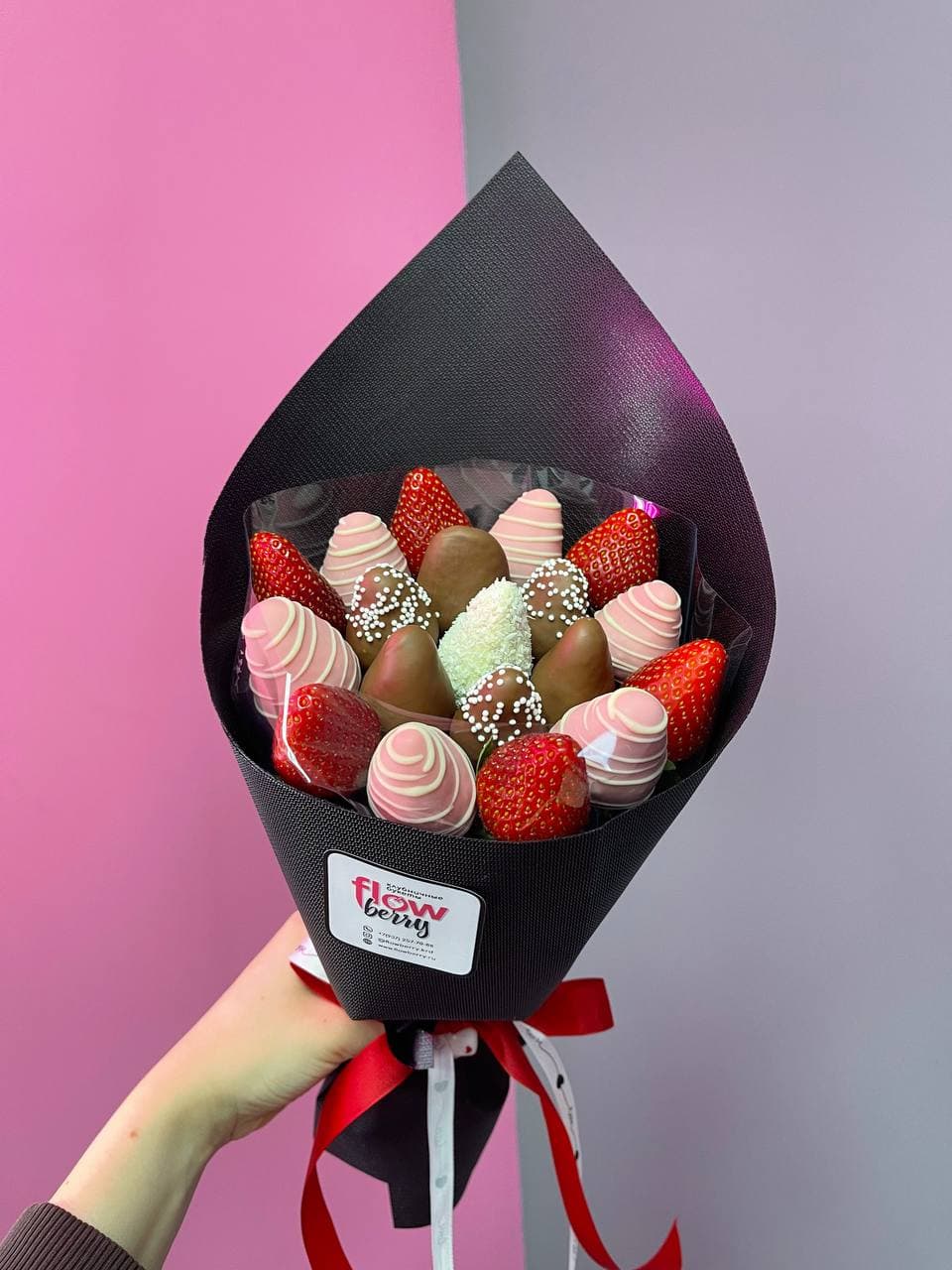 Мы с удовольствие поможем передать яркие чувства, нашими клубничными букетами
