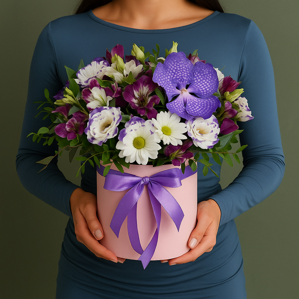 | Состав: | Альстромерии, Орхидеи, Хризантемы, Эустомы |