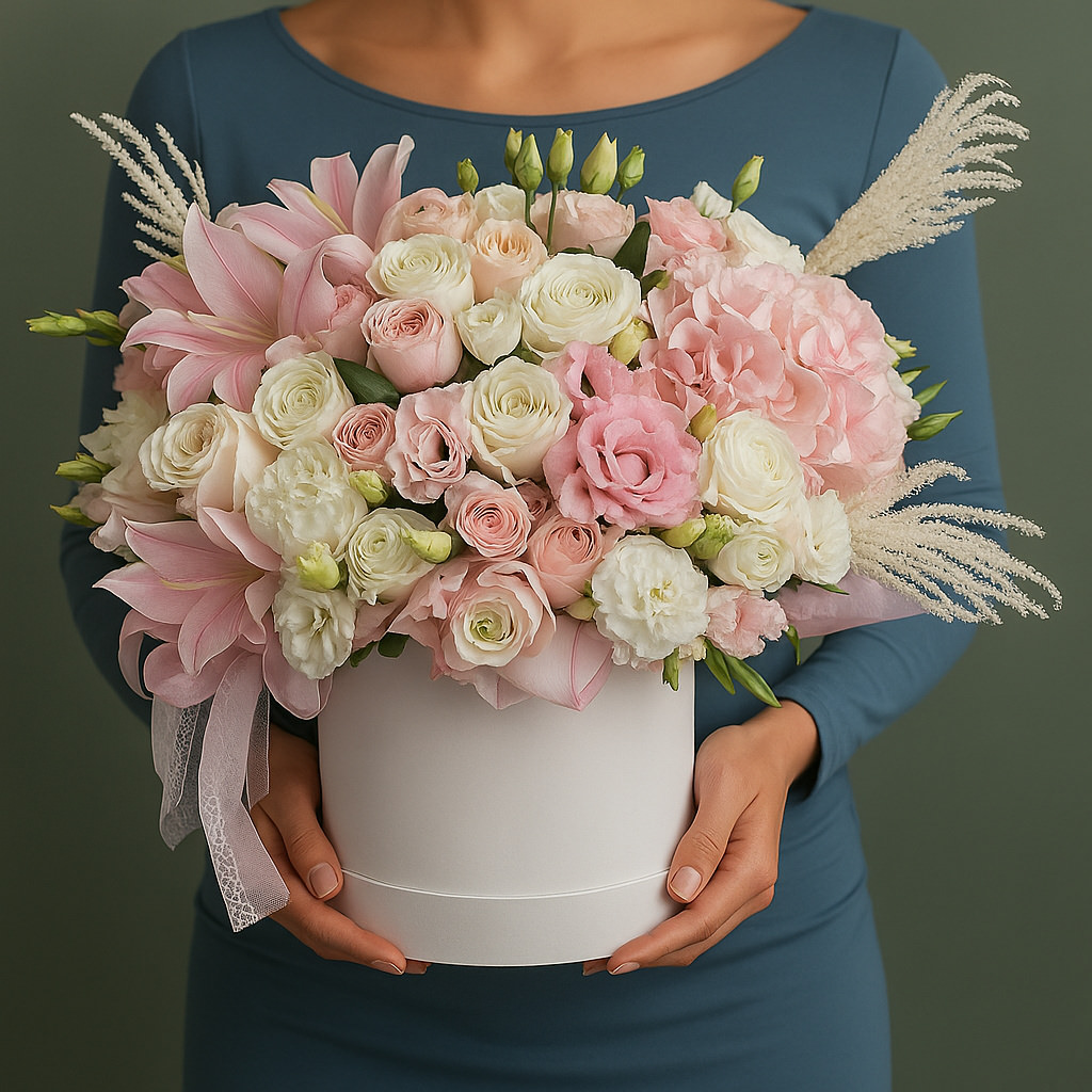 | Состав: | Гортензии, Кустовые розы, Лилии, Эустомы |